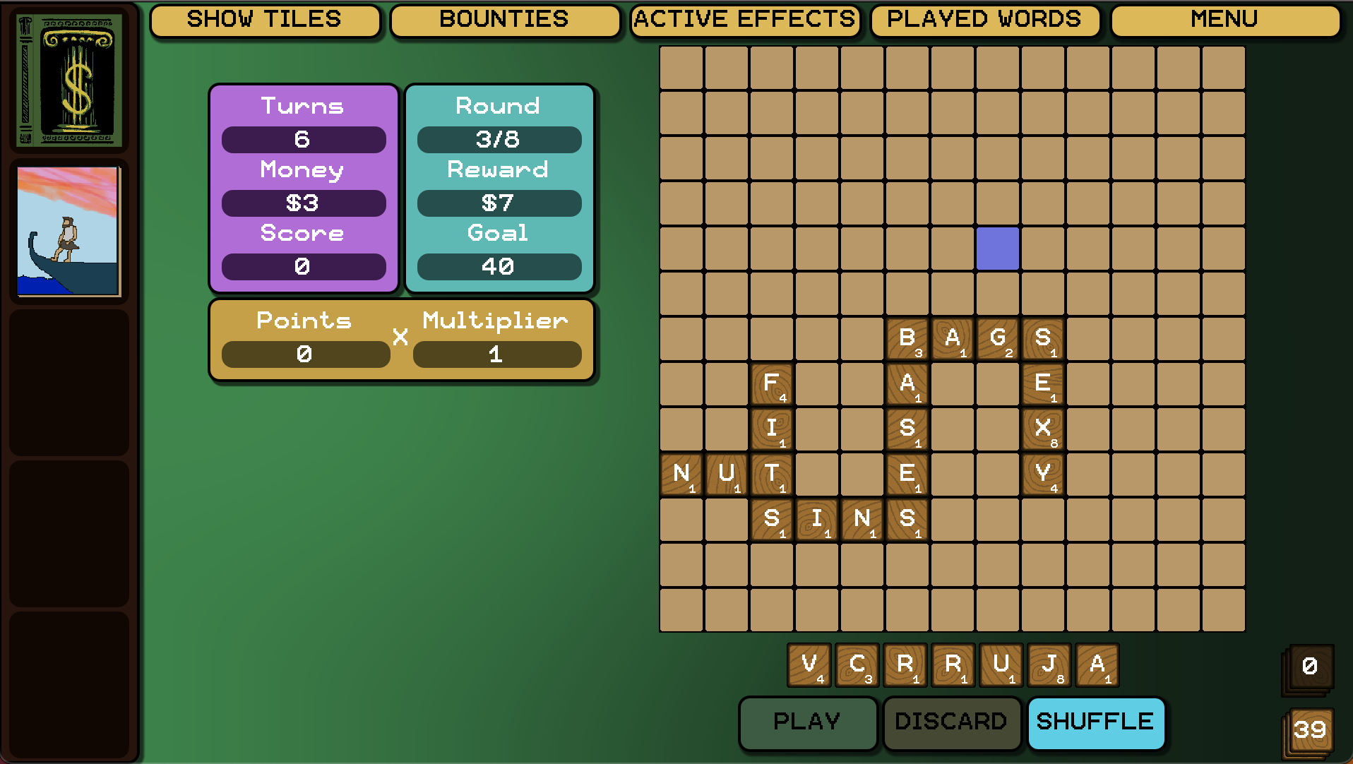Jargon is a word-puzzle roguelite deckbuilder where you build words, collect powerful “books” that change the rules, and experiment with combos as you push through increasingly difficult rounds. This demo is still in beta, so expect placeholder art, missing visuals or audio, and some balance issues. Bugs and crashes are possible. An artist is currently creating new item and bounty art, so visuals will be updated in future builds. The browser version can be a little laggy, I recommend downloading the game for best performance.